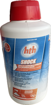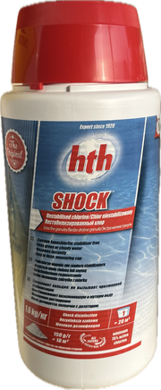 hth shock granules can be used either as a regular pool sanitiser, or as a shock to treat green or cloudy water. It has a minimum of 75% more active chlorine than standard calcium hypochlorite and its fine particle size enables you to dose directly in to the pool rather than pre-dissolve.