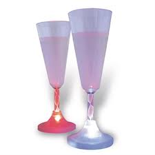 Light up your night and your drink with a pair of cool LED illuminated wine flutes. Fix on a set colour or let them cycle through the range of shades. Sold per pair complete with batteries.