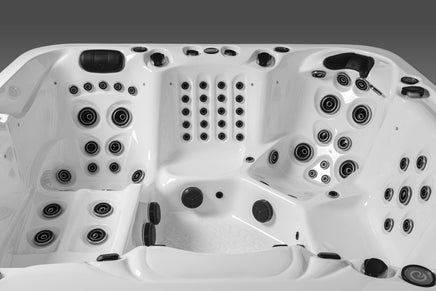 The Kern River is a 91″x 91″, 90 jet, 3-pump powerhouse. This model boasts no less than 4 foot blasters and 4 well positioned diverters for precision water therapy where you need it most. In addition, the Kern River is the very first spa in our line up to incorporate touchscreen controls with the added comfort of an auxiliary control conveniently located at the back of the spa.