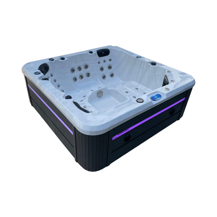 The Turre has seating for 5 including dual loungers. Featuring LED headrests, LED cup holders, Pop-Up water features and 44 stainless steel hydrotherapy jets that provide a high-intensity massage.